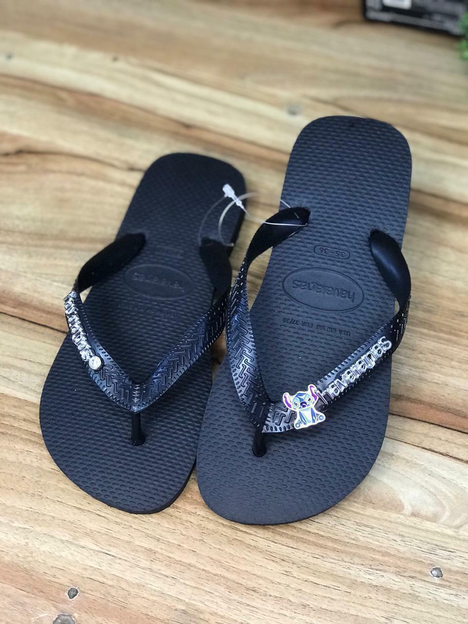 Chinelo Havaianas Original Personalizado com placas metálicas e pingente exclusivo